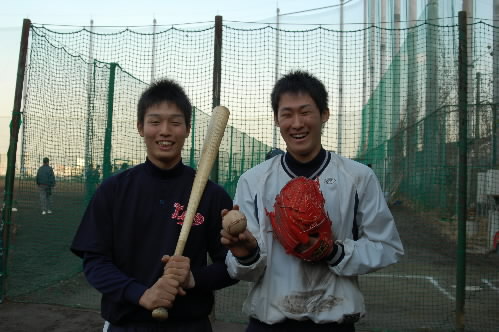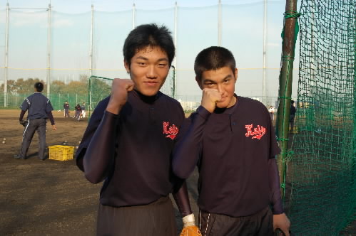 ▲岩田拓朗くん(千葉北シニア卒=左)に三雲暁くん(東練馬シニア卒=右)の1年生コンビ! ※ コメントはもうちょっと待ってて!