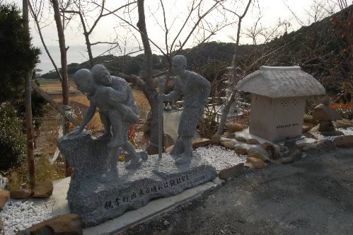 小さいころ、とてもとても苦労されて貧乏のどん底にいながら、歯を食いしばってはい上がって、今、大阪で事業をされて成功なさっている本城さん。小さいころ、お母さんが病気になってしまい、でも病院に行くお金がないので、毎日お母さんをおぶってお祈りに行っていたそうです。そして、その自分と母の姿を形作った石碑がありました。
