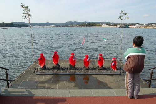▲その後、壱岐の名所の一つ、ほらほげ地蔵」に行ってみると、小さな男の子・・・といっても、ウチの女神と小僧の間くらいかな、小学1年生ぐらいの男の子が、おばあちゃんとそこに来て、手を合わせていました。それが習慣になっているようす。この島の子供たちは信仰心が強いようです。ほらほげ地蔵たちは浸食してしまって、顔がありませんでした・・・・