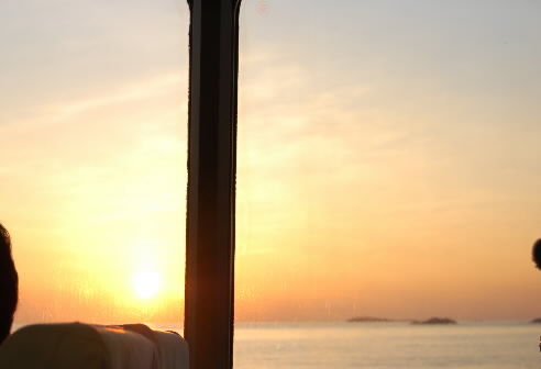 ▲帰りのヴィーナス、窓側の席に座れなかったので、ちゃんと撮れませんでしたが、夕日、きれいでした・・・