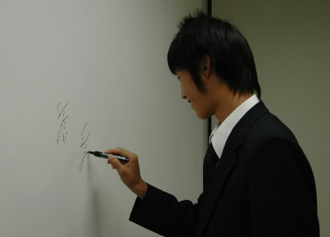 ▲で、2コマ終了後、あらためて、橋浦くんがホワイトボードに「水性ペン」でサインしてくれましたo(^ヮ^)o