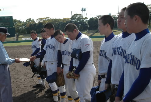 神戸中央 P:炬口和彦→井岡泰生(3回途中~)→井上壮(5回~) C:中田秀哉→舩本勝太(7回から8イニング零封!)