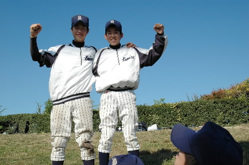 ▲こちら再び登場の片山くん(左)と、5回から10イニング零封した山田くんn! 166センチ、47キロの細い体でよく頑張りましたっっ 山田くんは「緊張して疲れました~(゜o゜)」 片山くんは「これからも、チョコチップ旋風じゃなくて八幡旋風を巻き起こします!!」