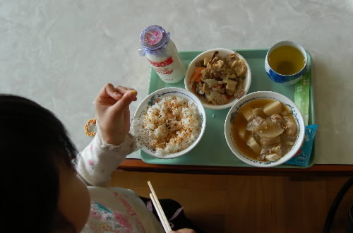 ▲「今日のメニューはいいものだよ、1年で一番いい! 今日きたのはラッキーだな!」と先生。「そうなんですか~(≧▽≦)」と言いながらさっそくいただきました! ふりかけをかけたら、その中に黄色い小さなお星さま発見! 女神感激!☆(゜▽゜)☆