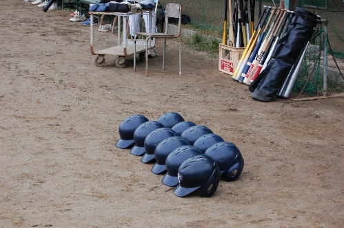 ▲グラウンド(校庭)に出たら、みんな挨拶してくれました! 恐縮っっ ヘルメットやバットなど道具がきれいに並べられていて、とても好感の持てるチームでした。