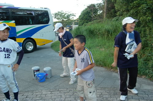 ほとんどのチームが東京ドームに入ったあと、残されるような形でドームの外にいたのが、青葉緑東シニアの今までベンチ入りしていながらこの大会は外れてしまった3年生選手たち。その中には、3番ショートの青木将崇くん、4番でキャプテンの榎本葵くんの姿もありました。