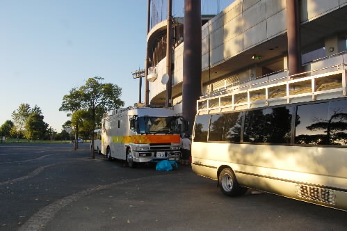 ▲大田スタジアムの試合はテレビ中継があるので、こんなふうに中継車が止まってます~