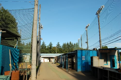 ▲みんな帰ったあとのきれいに整備されたグラウンドです。明日の練習開始時間を待っています。右の写真はホーム側から寮へ続く道。右がグラウンドで左が鳥かご。正面が寮です。その手前には部室があります。