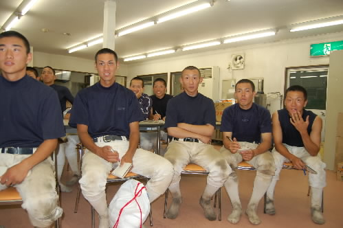 大会前なのでノックとバッティングで練習は終了。その後、ミーティングなどが終わったあと、合宿所で3年生選手たちに原稿で使う写真を撮らせてもらいました!