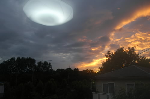 ▲今日の一枚! 窓から見えた夕日がとってもきれいだったのでパチリっっ そしたらUFOが写ってました~ なーんて、窓越しに撮ったので、部屋の電気が写っちゃっただけっす(^_^;