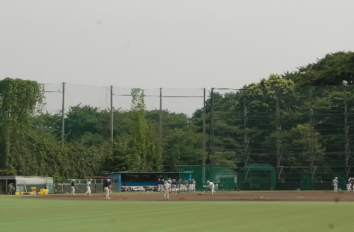 明大グラウンド話しでもう一つ! 前にも書きましたが、この明大グラウンド、今夏、甲子園予選、東東京大会で使用するんです! で、その安井マネージャーに「スタンドないけど、応援団はどこに入るの?」って聞いたら、「ネット裏ですかね~」ってっっ