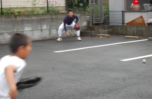 ▲レオくんの特訓により、小僧の守備力アップ?? 「ボールをちゃんと見てれば、グローブはそこにいくものなんだから、ボールを見ておきな!」 この一つのアドバイスでショートバウンドが上手に捕れるようになりました! さすが守備の達人・中山怜大!(*≧∇≦)