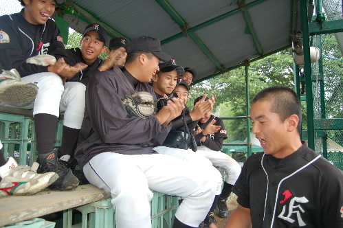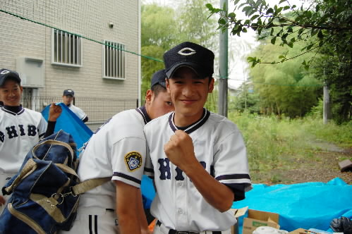 ▲キャプテンの御子柴竜央くん! 「関東決勝はとにかく勝ちます!」と気合い十分! だれですか~ちゃっかりまとわりついてるのはっっ??(^^;;)