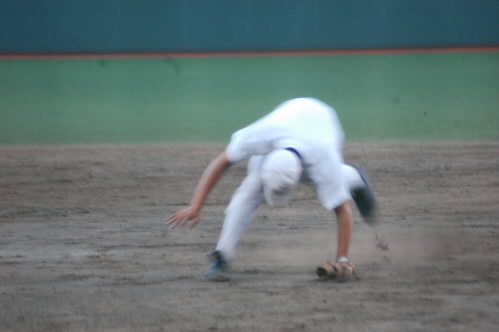 ▲こちらはサードでノックを受ける佐藤くんとファーストでノック受ける蓮見くんです。かなりボケちゃってる写真ですけど必死になってるってところ、分かるかなぁっっ