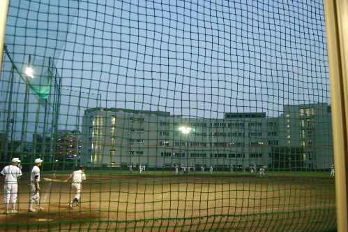 練習はフリーバッティング、1本バッティングを一通りやった後、ノックへと入っていきます・・・いつもの帝京の練習です。。。。が、このノックがスゴイです。。。帝京グラウンドは周りが木で覆われているし、一般の人は外から練習を見ることができません。みんなに見せられないのが残念ですが、私はいつもこの前田監督の鬼ノックに釘付けになってしまいます。この日も、最初はネット裏の小屋の椅子に座ってみていたのですが、だんだんと力が入ってきて、スリッパを脱いで、椅子の上に正座をして、身を乗り出して見てしまいました(^^;;)