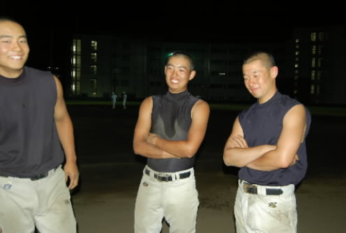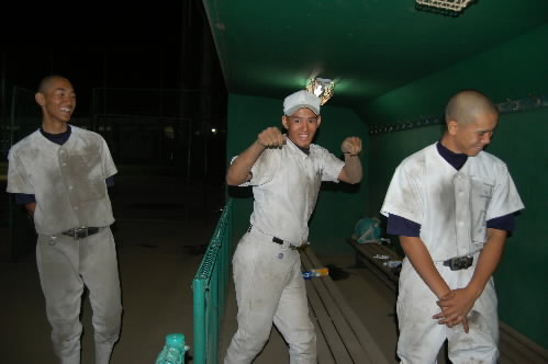 自分たちのシニア時代の話しをしたり、今、シニアの大会で、出身チームはどうなってるか・・・なんて話しになって、「杉並はもう負けちゃったよぉ」に矢島くん、ガックリっっっ 逆に、長瀬くんは、「自分が富士見シニア時代は全然勝ってないっす! 関東大会にも行けなかった」と言いながらも、今春の関東大会で準優勝してるので、とっても誇らしげo(^ヮ^)o