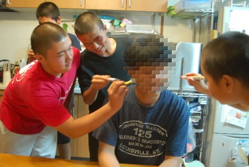 ▲さてさて、2年生の先輩たちに、「何かやれよ~!」と言われた1年生選手、ヘビ(ナガセ先輩?)に睨まれてしまったから。。。というわけでもないのですが、、、佐藤くんがやってくれました~(≧▽≦)♪♪