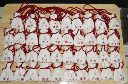 で、ここ数日夜なべしてようやく完成!! 結局は最後の大会が始まってから渡すことになっちゃいましたが、このお守り袋に願い事や目標を書いた紙を入れて、それぞれがそれぞれの目標にちょっとでも近づいたらいいな、って思います(^O^)/ 御利益あればいいなと思いますっ(^_^) と