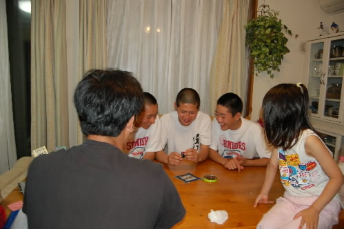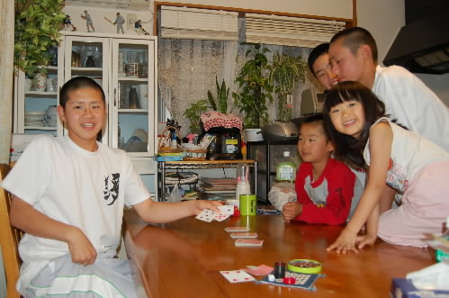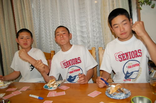▲恒例、×ゲーム付トランプ選手権大会! 気合いのガッツポーズ! が、、、今日は桑原くんが負け続け・・・最後の最後に駒井くんが負けて・・・