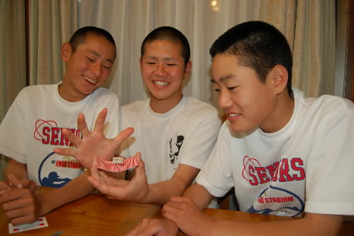 食後は、監督によるマジックショー☆(゜▽゜)☆ ウチの野球小僧くんが最近マジックにはまっていて、パパが100円ショップでマジックグッツを買ってきては家の中でやり合っていたのですが、それを選手くんたちに披露したのでした(≧▽≦)♪♪