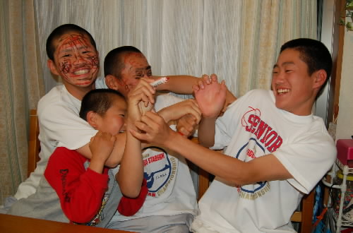 ということで、大事な試合(全国予選)前日もこんな感じで盛り上がっておりましたっっ(^^;;) ま、楽しくて何より! 気が付けば、今年の代のお泊まりもあと4人になったそうですっっ なんとなく寂しいような(^^;;)