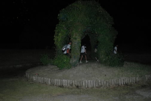 この写真は、スタジアムからちょっと離れた公園内の駐車場に歩いているときに撮りました! 暗くてなんだかよくわからないけど、、、ゾウさん??タコ?