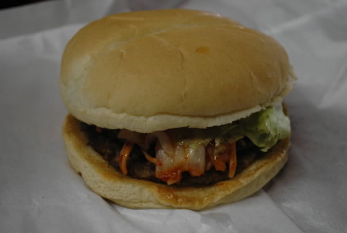 そんな永田くんに薦められたのが「キムテギュンバーガー」(ロッテリア/400円) 何かと思ったら「ただキムチが入ってるだけですけどね」って永田くん(笑) せっかくだから食べてみるか~と女神ちゃまに買ってきてもらい、ママが試食。うーん、なかなかいける!! 小僧も「これウマイ!」と半分ぐらい食べちゃいましたっ