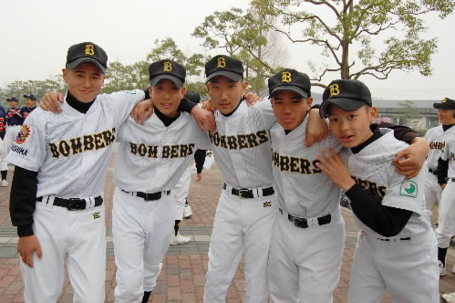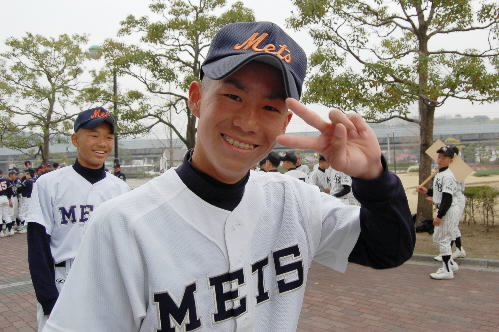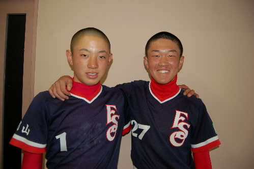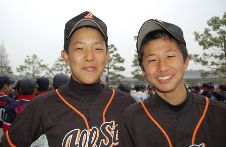▲そして、左がチームの「評論家」こと堀江修平くん、いや~アナタはオモロイですっっ 聞いてないのにあれやこれやといろんなことを「評論」してくれましたっっ それも詳しいし、的を得てるし、まるで監督のよう・・・あとから知ったんだけど、堀江監督の息子だったんですね~(^。^;) 堀江モンは「口ばっかり」というウワサもありましたけど、試合を見て、そうじゃないことが分かりました。口も達者ですが、頭も切れるいいキャッチャーです。バッティングもよかったね! 将来は「ライブドア」じゃなくて「楽天入り」ね!またまた会いましょう~!