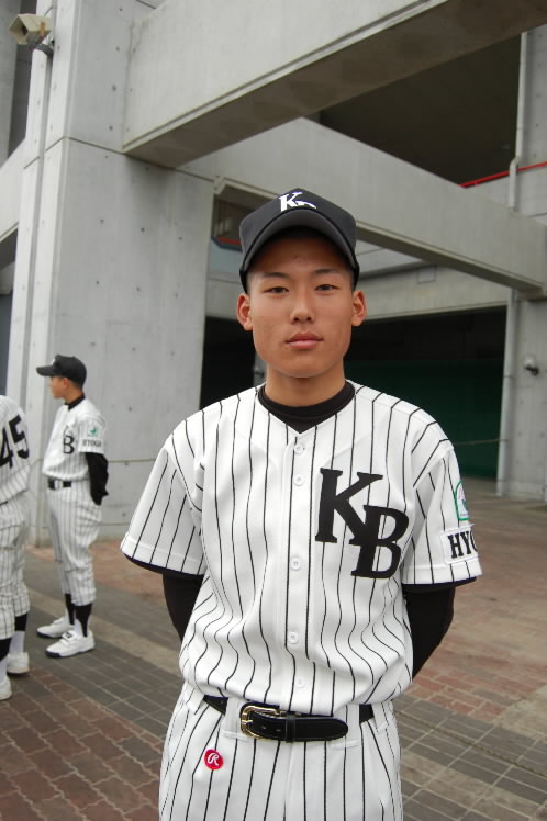 ▲淡路KBの注目はエースの森本竜治投手! 今大会注目の本格右腕です! 173センチ、62キロ MAXは120キロ後半。ストレートにスライダーで三振が取れる投手。目標は「全国制覇」そして、将来は「プロ野球選手になる、松坂投手が目標」だそうです!