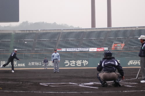 マウンドで1回腕を回して、投球練習開始。寒いのか、マウンドが合わないか(ここのマウンドは硬い!!)、いつもほど調子がいいようには見えないっっ ちょっと心配っ