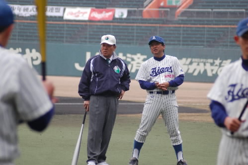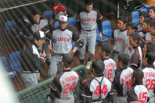 日大は昨秋のリーグ戦で東都の2部に落ちてしまい、今季での1部復帰に向かって頑張ってます。が、鈴木監督は、昨日、今日のオープン戦でのミスを一つ一つを例に上げて、「こんなことやってるようじゃ絶対あがれない! 前向きな気持ちがない! 草野球やってるようなもんだ! 分かってない!」と・・・。私も最初から見てたわけじゃないのですが、守ってはポロポロあったし、攻撃でも状況が分かってないなーっていうプレーありました(*v.v)