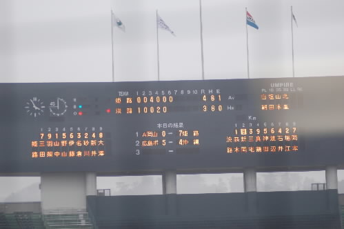 ▲こちら2回戦屈指の好カード、姫路アイアンズ×淡路KBクラブ戦は、小雨の中、それも日が落ちていく中の試合となりましたが、両者譲らぬ好ゲーム。結局、このスコアのまま姫路アイアンズが逃げ切り勝ちしました。