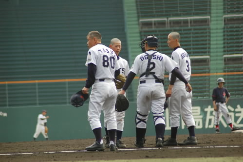 ▲姫路アイアンズ。川端監督の話しに耳を傾ける姫路アイアンズナイン。姫路アイアンズで始まり、姫路アイアンズで終わった今大会でした~