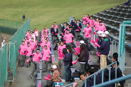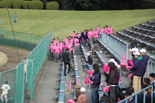 ▲甲子園もいいけど、やっぱ地方大会もいいっすねー♪ ダイヤモンドにももちろん注目ですが、私はスタンドの応援を見るのも大好きっ 今日は日大鶴ケ丘対成立学園の試合などを見てきましたが、日大鶴ケ丘の選手たちは、ピンクのTシャツをきて、ピンクのメガホンを持って、桜の花びらがヒラヒラと舞う中の応援! 成立学園はさわやかなブルーのメガホンを持って応援してました!
