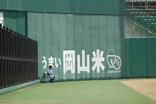 ▲そして、、、、、山中投手がその後も岡山メッツ打線を抑えて・・・勝利の瞬間を迎える前に、この1枚っっ(^^;;) 「うまい岡山米」とボールボーイも戦況を見つめる中・・・・