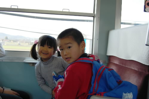 ▲倉敷マスカットスタジアムの最寄り駅、中庄駅のホームにて・・・。毎日、宿から球場までは電車で通いました~ 電車に乗ると、ちょっとの時間でもトランプをする二人っ