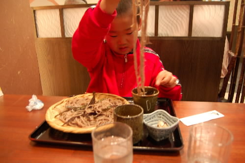 ▲初日は小僧の希望でそば屋へさんへ・・・ 疲れてるけど、食欲もあるっ 小僧は大盛り頼んでもまだ足りず、またお代わりしちゃいました(≧ε≦o)