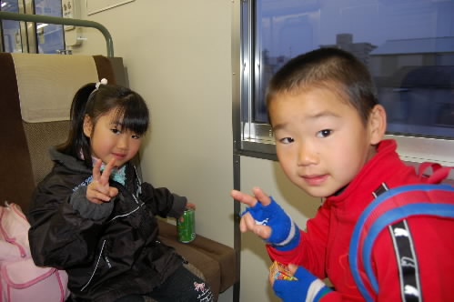 ▲ということで、新幹線の中ですっっ たくさんの荷物にうずもれて遊ぶ小僧たちっっ 何やっても楽しいようで(^。^;)