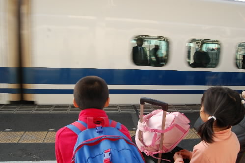 ▲岡山から大阪までバスで移動しようかと思いましたが・・・時間もかかりそうだし、、、出費我慢で新幹線にしました~ メッタに新幹線乗せてもらえいのにぃぃ 小僧&女神は新幹線を見て大興奮??