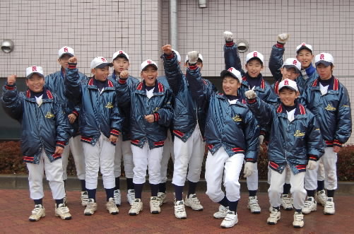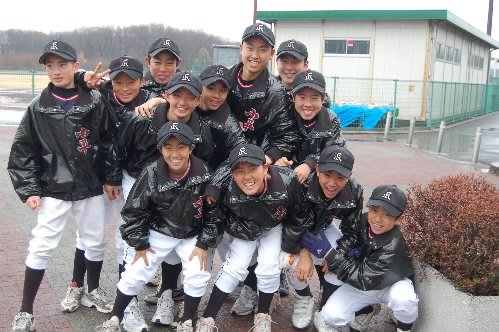 ▲さっそく写真を撮らせてもらいました! 左から杉水馨くん。三野優雅くん、角鴻太郎くん、横田祥平くん! 彼らはボーイズ最後の大きな大会、昨夏8月終わりの関東大会で優勝しています!