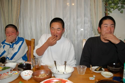 今日もダンナチームの選手くんが3人泊まりに来ていますっっ 明日試合のため、10時には就寝。さっき下に降りたらスースー、グーグー、ゴーゴー寝息をたてて寝ていました(^^)