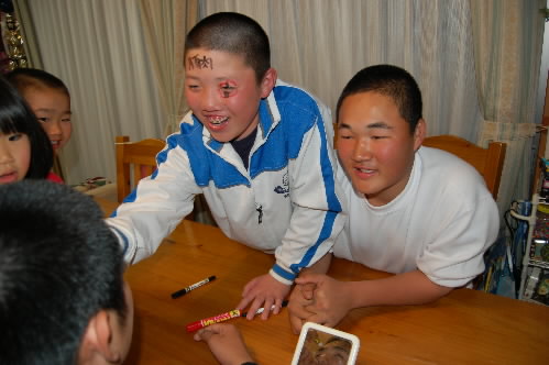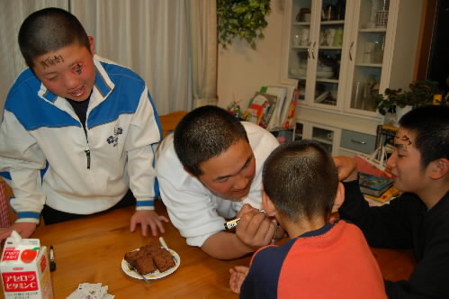 ▲恒例の×ゲーム付きトランプ(大富豪!) 負けた松本くんに大喜びでカキカキする本多くんっ