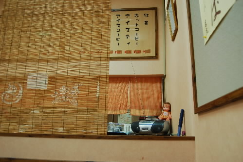 ▲偶然入ったそば屋にいためるちゃん!! もちろん、違うめるちゃんでしょう・・・。でも、女神が「沖縄にメルちゃんを探しにいく!」と言っていて、沖縄に行って最初に入ったそば屋に偶然にもメルちゃんが座っていたのでびっくりしましたっ!!!