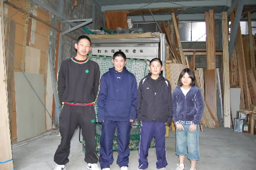 ▲石田4兄妹! 左から悦太郎くん(世田谷西シニア卒→世田谷学園卒→今春から淑徳大学野球部!)、続いてユッコ(世田谷西シニア間もなく卒→高校はお楽しみに!)、次男の昂次郎くん(世田谷西シニアの有望1年生(^O^))、次女の彩紀子(サッコ=小学4年生、少年野球) 4人とも野球やってるんですよ~