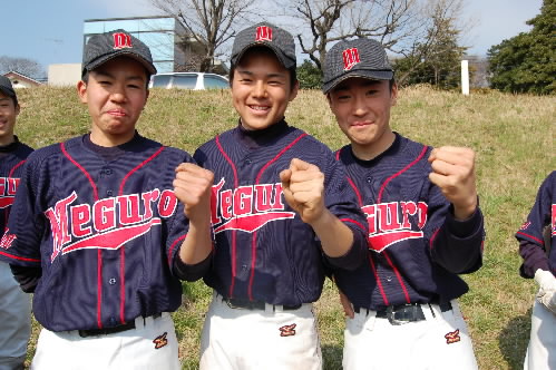 詳しくはあとで書きますが、1試合目が世田谷シニアの能登谷貴仁くんがノーヒットノーラン! 2試合目は逆転、再逆転、再々逆転で目黒西シニアがサヨナラ勝ち! 3試合目は秋の関東準優勝、世田谷西シニアが最後の最後まで苦しみながら、延長9回、1年生山本くんのヒットでサヨナラ勝ち! もうこの回点数入らなかったら引き分け再試合っていう最後の最後で決着がつきました~