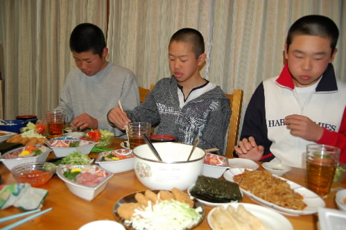 今日は、3人の選手くんが泊まりに来ていて、今、ようやく夕飯の支度が終わったところっっ お風呂あがるの待ちです~