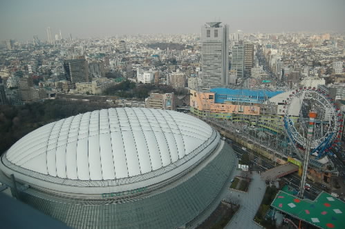 東京ドームを上から見る、なんてなかなかできないなと写真を一枚パシャリっっ! さすがはお上りさん記者(;^_^A