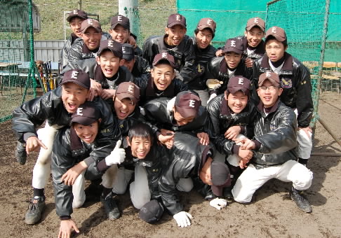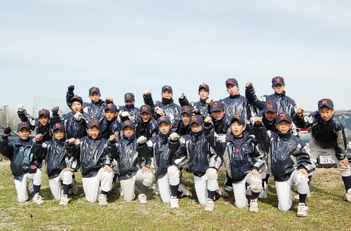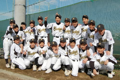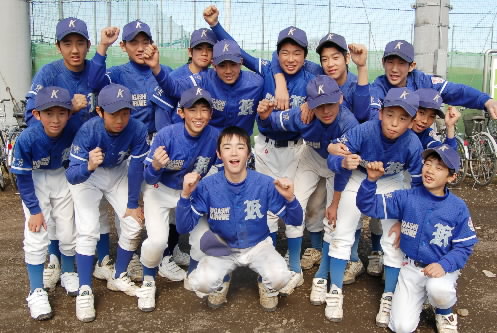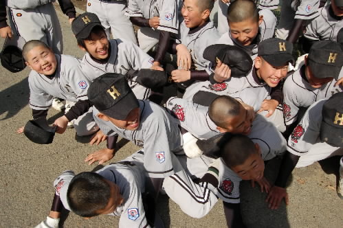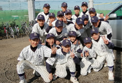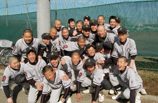 ▲東久留米の1年生たち! なかなかの有望選手がいましたよ、前列一番右にいる石附拓磨くんと、一番左でガッツポーズしている柴智昭くん! いいキャラしてます! 「キャラ有望株!!」と藤本監督のお墨付きです~