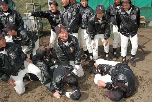 ▲こちらが府中イーグルスの2年生選手たち。勢い余って崩れてしまった~(*^。^*)
