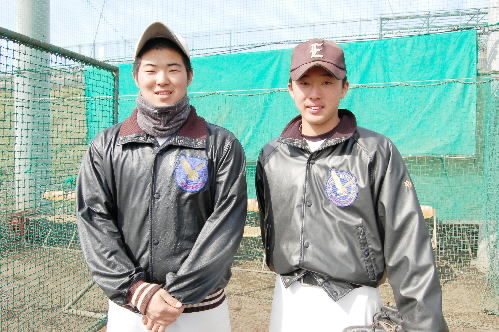 ▲2年生、キャプテン小宮稔真くんと投打の中心の高石博土くん、、佐宗智之くんです!